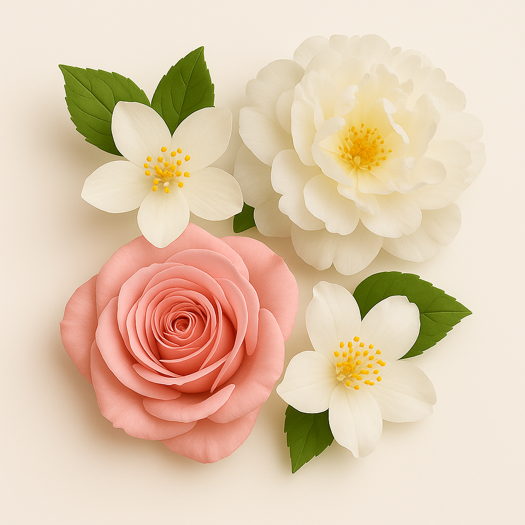 Classic Floral – rožės, jazminai ir bijūnai 🌹✨. Laikui nepavaldi klasika, visada žavinga.